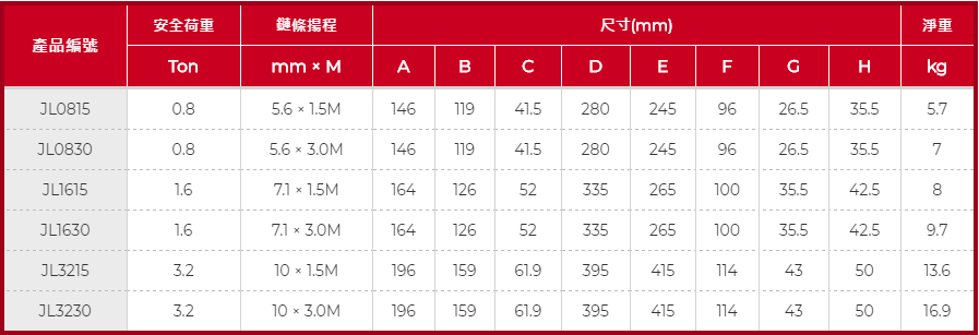 產(chǎn)品特性:小型、輕量化,便於攜帶100級鍍鎳鏈條,安全係數(shù)高,使用壽命長引導式導鏈設計,使鏈條導向更順暢採用燒結摩擦片,不易碎,防油防滑,剎車性能高特殊手輪設計,可將鏈條長度迅速的調節(jié)至所需長度