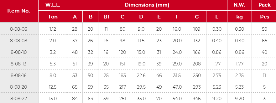 鉤子是設計用于與80級合金鋼鏈條、鋼絲繩?! ⒛芰?、PASAK和壓印在產品上。 材料:高強度合金鋼鍛造 建設:熱處理、高溫治療(調質) 安全系數:4:1臺灣帕薩克PASAK環眼吊鉤