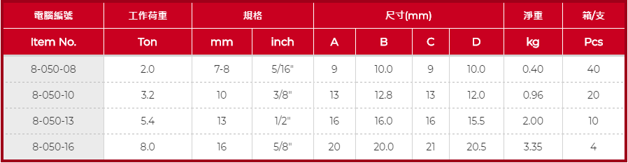 產品特性:設計用於80級合金鋼鏈此款式設計最不易使鏈條鬆開應用縮短或鉤住長鏈條通過狹窄間隙,卡槽達到和鏈條咬合防止滑落插銷開口的設計確保正確鏈條尺寸的使用,省去連接鏈條時活動鏈接的使用產品上面印製吊裝載荷量,PASAK和WLL的浮雕標誌材質:高強度鍛造合金鋼結構:熱處理高溫