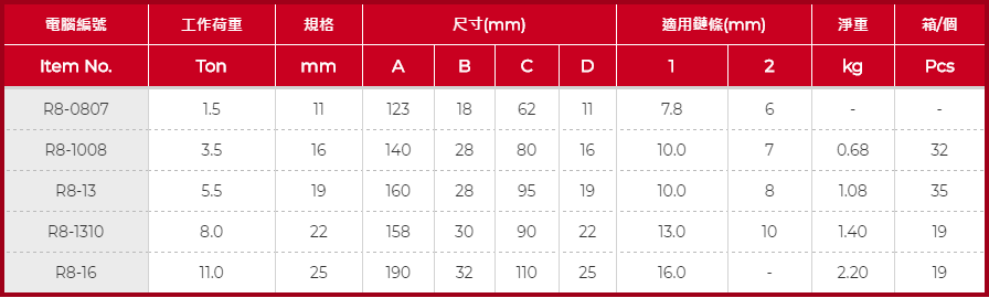 - 下一條:臺灣帕薩克80級橢圓形鋼圈(橢圓形強力環)