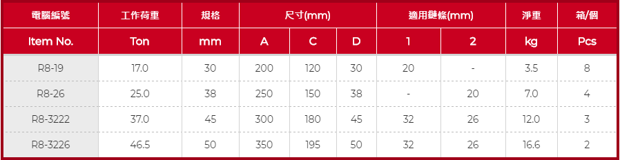 產(chǎn)品特性:設(shè)計用於80級合金鋼鏈及鋼絲繩連接的起吊點(diǎn)精心設(shè)計為一體成形無焊接口,並且扁平易於連接方便產(chǎn)品上面印製吊裝載荷量,PASAK和WLL的浮雕標(biāo)誌材質(zhì):高強(qiáng)度鍛造合金鋼結(jié)構(gòu):熱處理高溫處理(淬火,回火)安全係數(shù):5:1