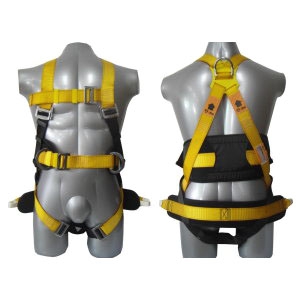 產品特性:此產品易穿著、簡單並安全此產品對肩膀、腰部、臀部、腿部有加以保護之作用,安全帶之輔助繩索改良為緩衝織帶不易造成太大衝擊力,導致身體受傷使用須知:此緩衝織帶須在高度4米以上方可使用