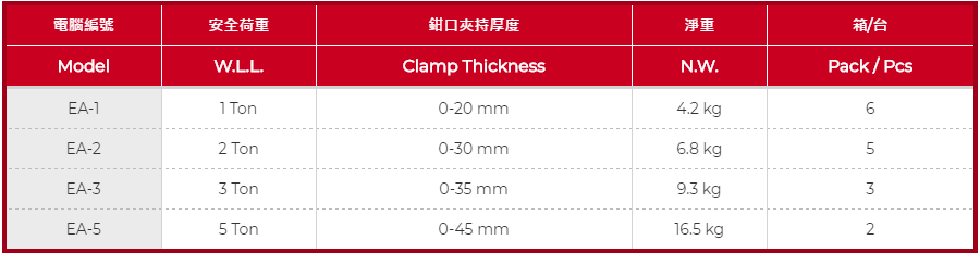 產(chǎn)品特性:材質:合金鋼鍛造結構:熱處理高溫處理安全鎖機制產(chǎn)品上面印製吊裝載荷量,P.S.K和WLL的浮雕標誌安全係數(shù):3:1使用用途:E型立吊專為鋼板的升降起吊而設計的,以一只試驗為額定載荷,吊裝作業(yè)中單只或兩只配套使用,立吊擁有安全鎖裝置,起吊時必須將拉環(huán)手柄向上以使彈簧拉緊,卸荷